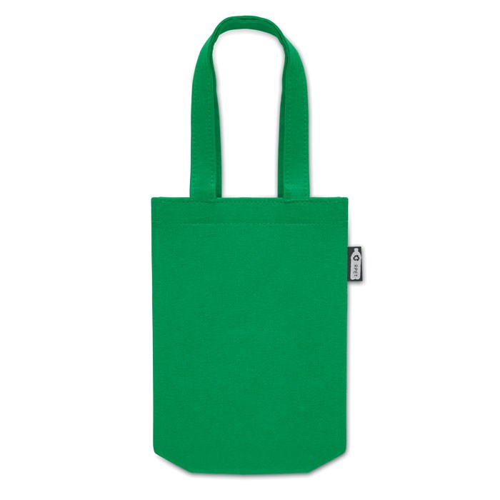 Petit sac cadeau en feutre RPET avec anses courtes et soufflets de fond. Epaisseur du feutre : 1 mm.plus