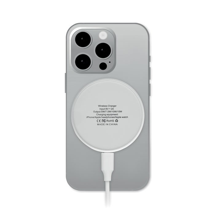 Chargeur sans fil 3 en 1 15W . Convient pour smartphone, smartwatch (Samsung® <(>&<)> Apple®) et TWS. Longueur du câble : 1M. Entrée : 2-en-1 Type-C <(>&<)> Type-A.