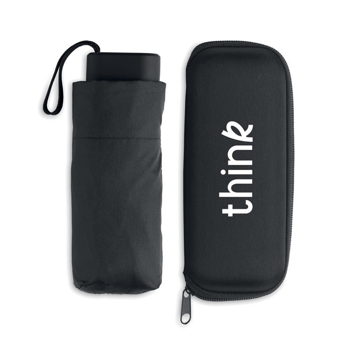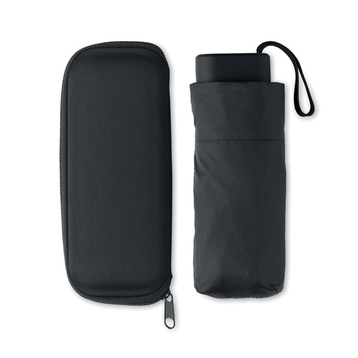 Parapluie tempête 19 pouces 5 plis à ouverture et fermeture manuelles en pongé 190T. Présenté dans un étui EVA.