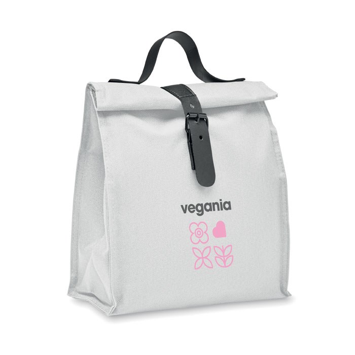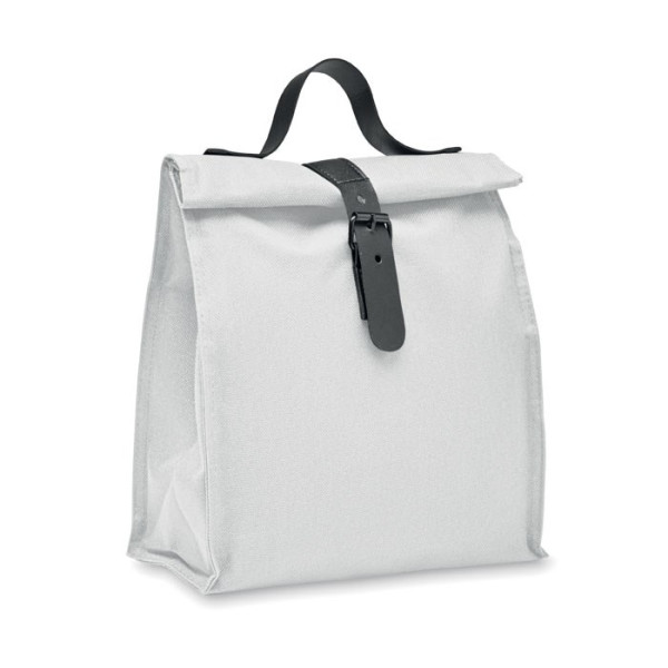 Sac isotherme enroulable en polyester 600D RPET avec poignée et fermeture en PU. Isolation : mousse PE 3 mm avec PEVA.