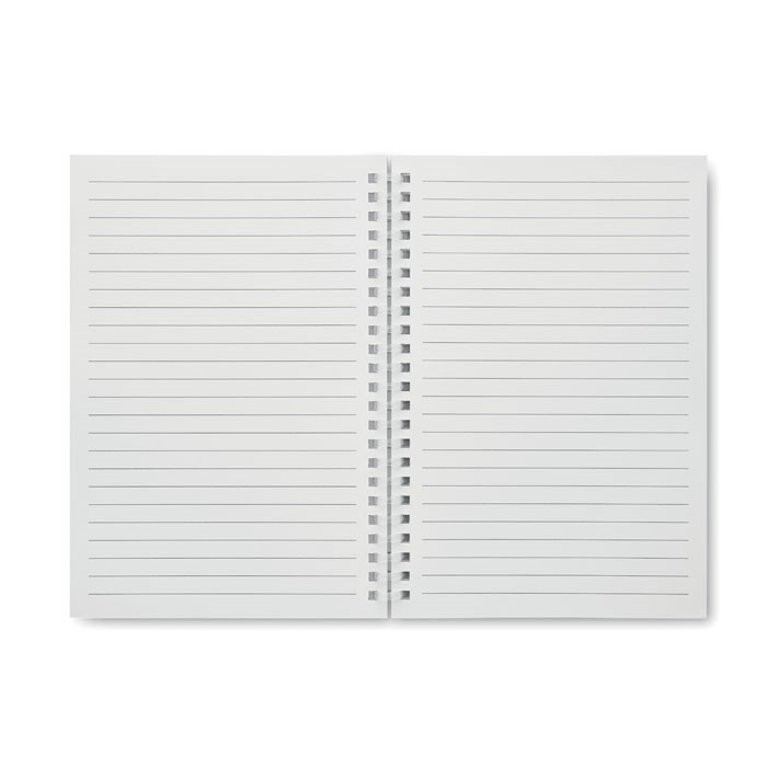 Carnet A5 à couverture en carton recyclé et reliure à spirale. 160 pages de papier ligné recyclé (80 feuilles). FSC®-certified | FSC MIX CREDIT, P7.1, FSC-C213206