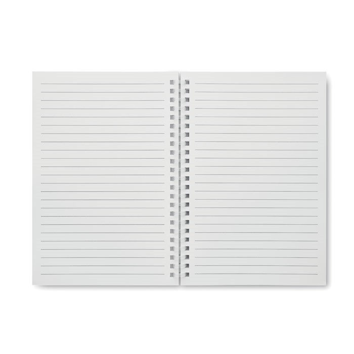 Carnet A5 à couverture en carton recyclé et reliure à spirale. 160 pages de papier ligné recyclé (80 feuilles). FSC®-certified | FSC MIX CREDIT, P7.1, FSC-C213206