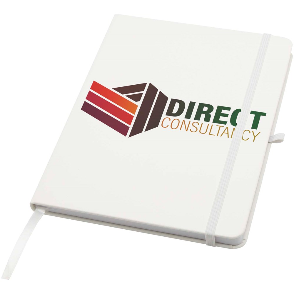 Le carnet A5 en carton recyclé à couverture rigide et coins arrondis Teak est non seulement un indispensable du bureau, mais aussi une excellente occasion de promouvoir votre marque. Le carnet comporte 96 feuilles lignées d'un grammage de 70 g/m2 et une couverture douce au toucher. Il est muni d'une boucle pour stylo, d'une fermeture élastique et d'un ruban marque-page.