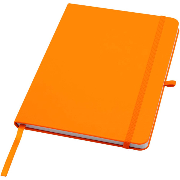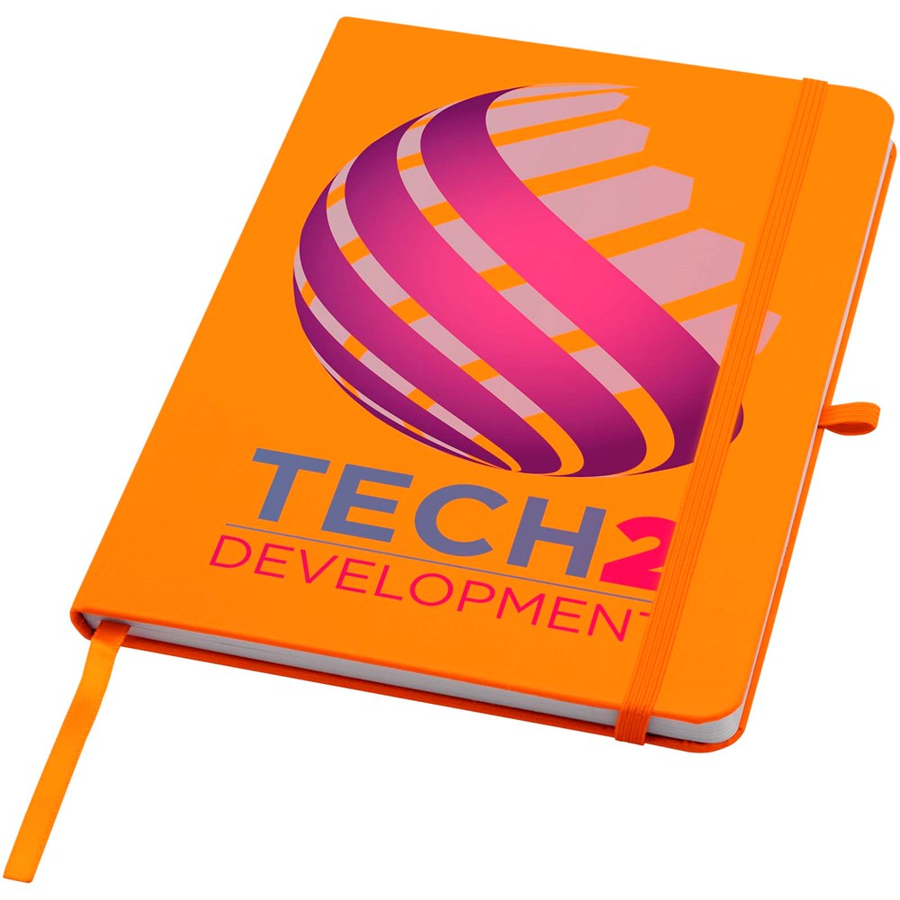 Le carnet A5 en carton recyclé à couverture rigide et coins arrondis Teak est non seulement un indispensable du bureau, mais aussi une excellente occasion de promouvoir votre marque. Le carnet comporte 96 feuilles lignées d'un grammage de 70 g/m2 et une couverture douce au toucher. Il est muni d'une boucle pour stylo, d'une fermeture élastique et d'un ruban marque-page.