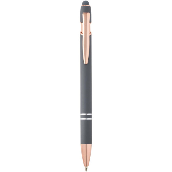 Le stylo bille Nanna avec finition or rose est pourvu d’un corps en aluminium recyclé et d’un stylet tactile en silicone. L’aluminium recyclé réduit également la quantité de déchets dans les décharges et contribue ainsi à la conservation des ressources naturelles, tout en réduisant les émissions de gaz à effet de serre. Couleur de l'encre : Noire. Longueur d'écriture : 800 mètres. Taille de la plume : 1,0 mm.