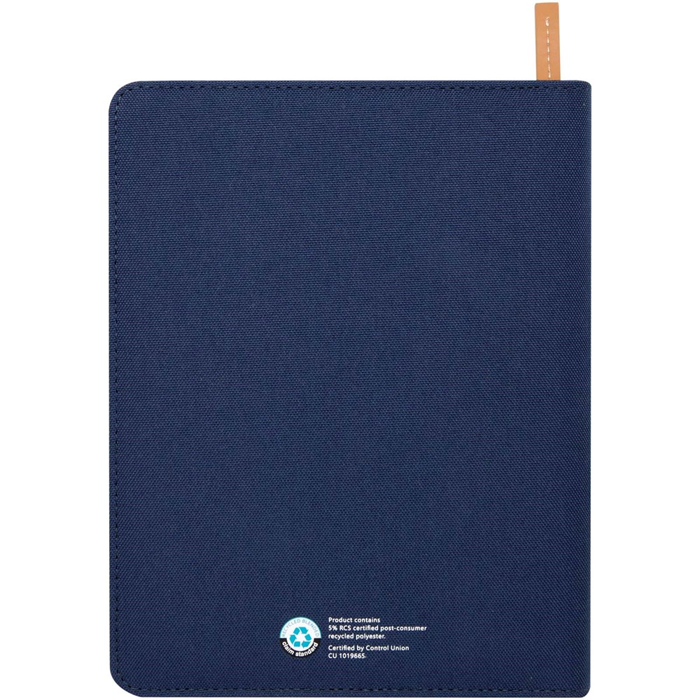 Le porte-document Nomumi A5 avec coins arrondis constitue un accessoire de bureau pratique en plastique recyclé. Comprend 64 feuilles lignées de couleur crème de 80 g/m2, une fermeture à glissière, une boucle pour stylo et une pochette accordéon.