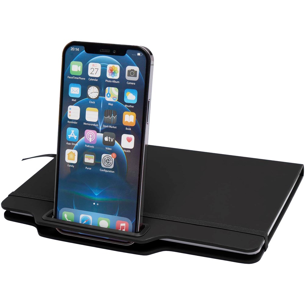 Le carnet de notes A5 à couverture rigide avec stylo/crayon combiné Nexus comprend 80 feuilles lignées de couleur crème en papier 70 g/m², des coins arrondis, une fermeture élastique et un ruban marque-page. Le stylo est double : stylo à encre noire d’un côté et crayon de l’autre. Longueur d’écriture du stylo : 1000 mètres. Taille de la plume : 1,00 mm.