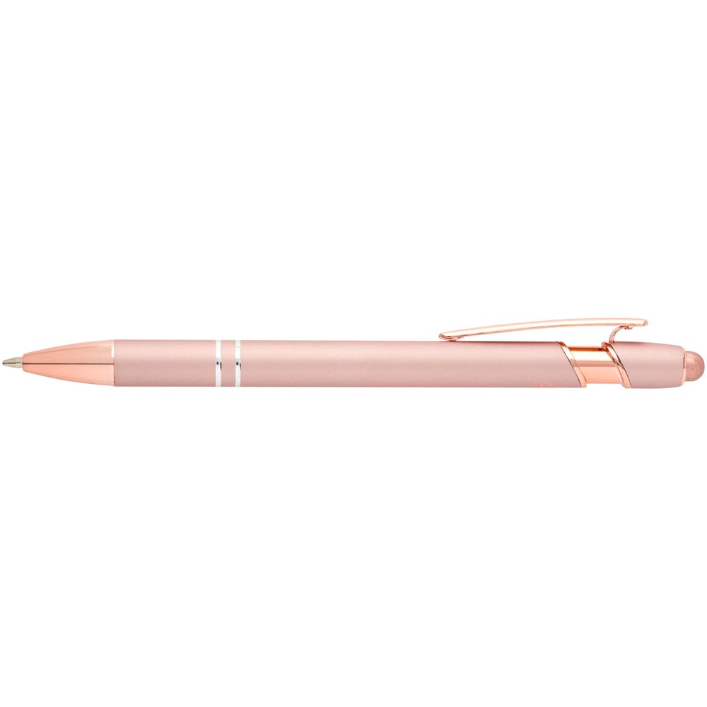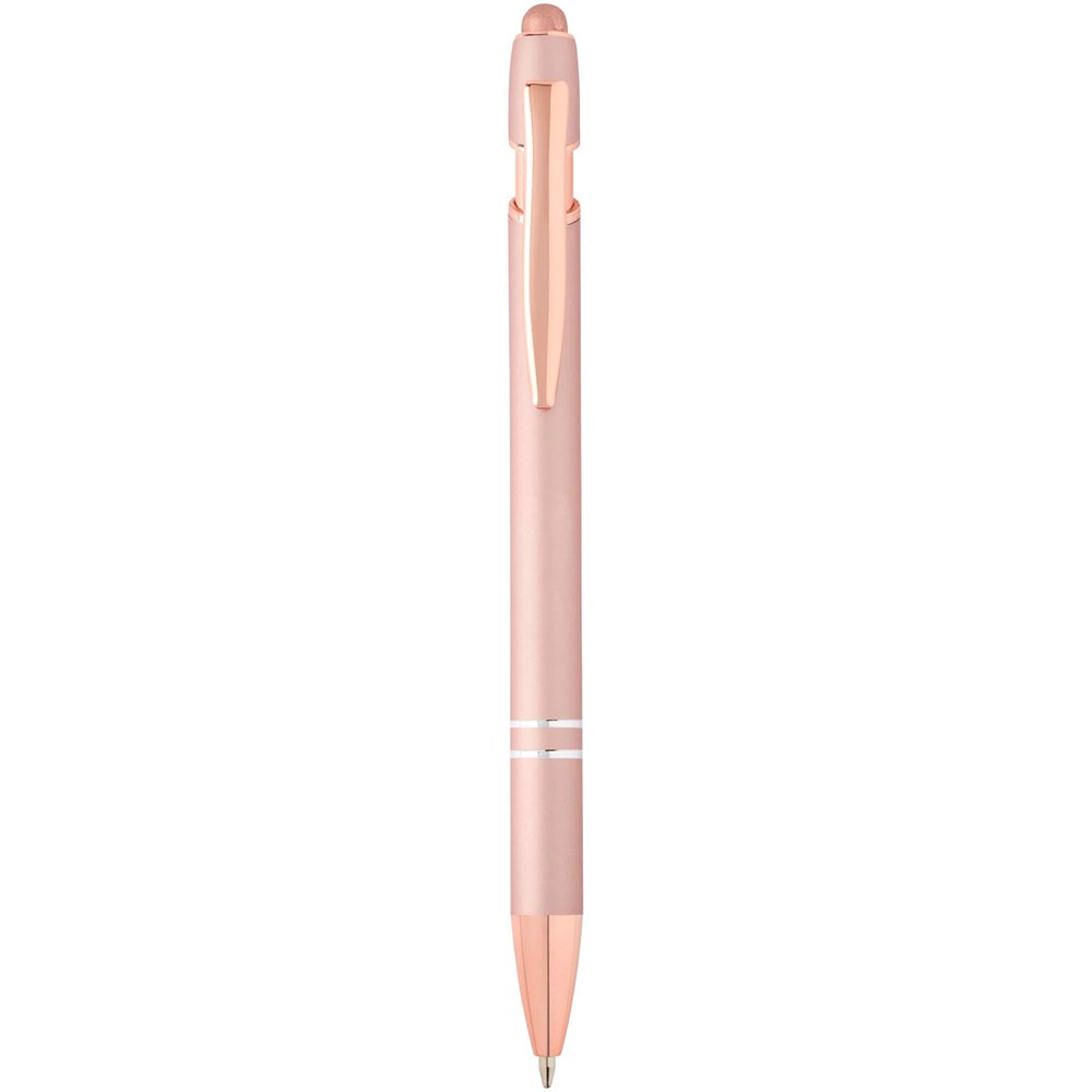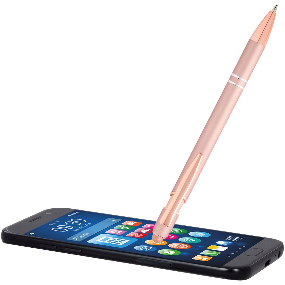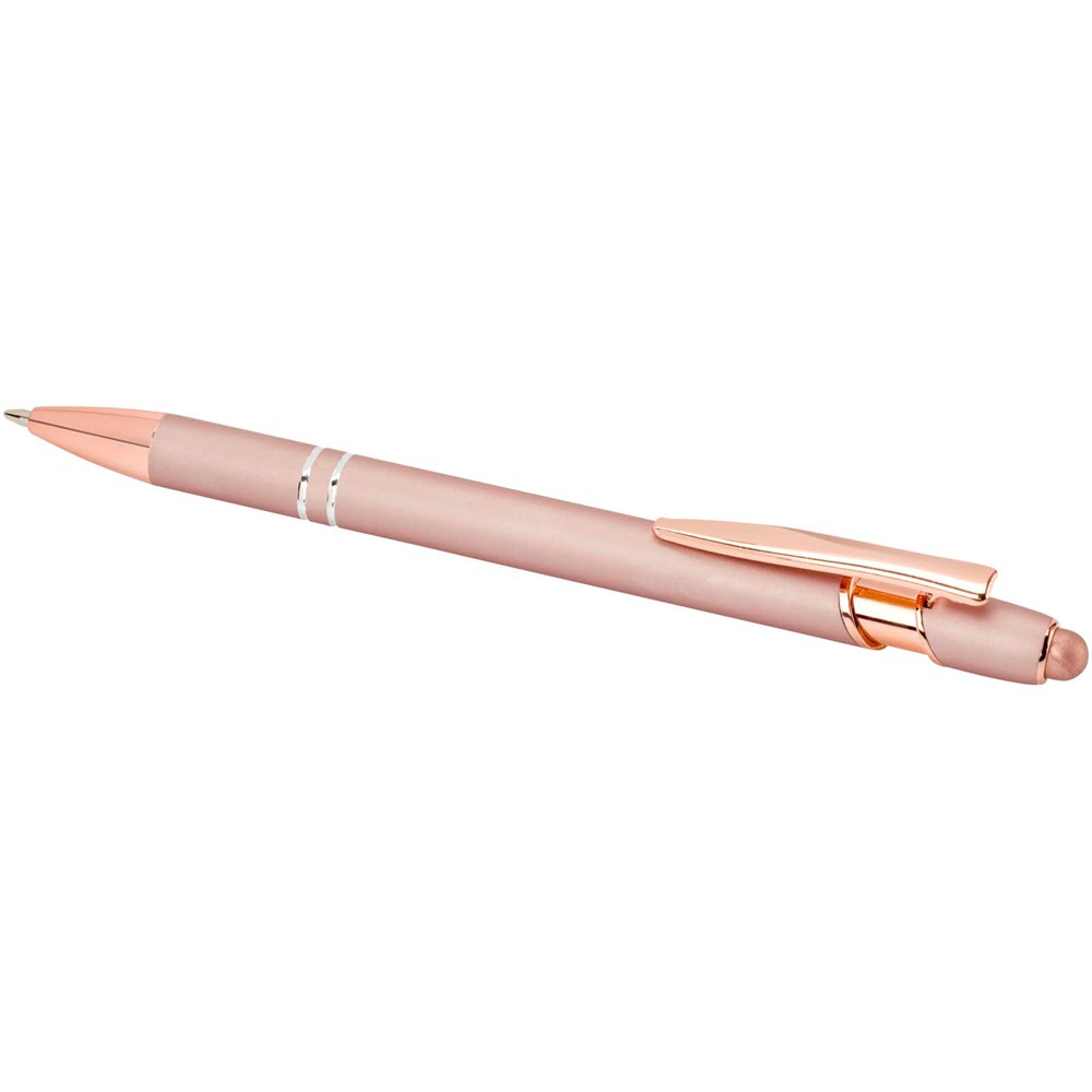 Le stylo bille Nanna avec finition or rose est pourvu d’un corps en aluminium recyclé et d’un stylet tactile en silicone. L’aluminium recyclé réduit également la quantité de déchets dans les décharges et contribue ainsi à la conservation des ressources naturelles, tout en réduisant les émissions de gaz à effet de serre. Couleur de l'encre : Bleue. Longueur d'écriture : 800 mètres. Taille de la plume : 1,0 mm.
