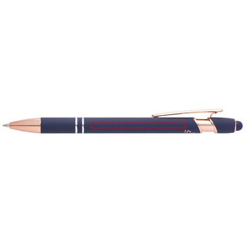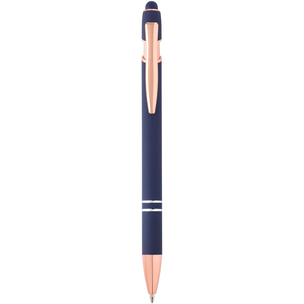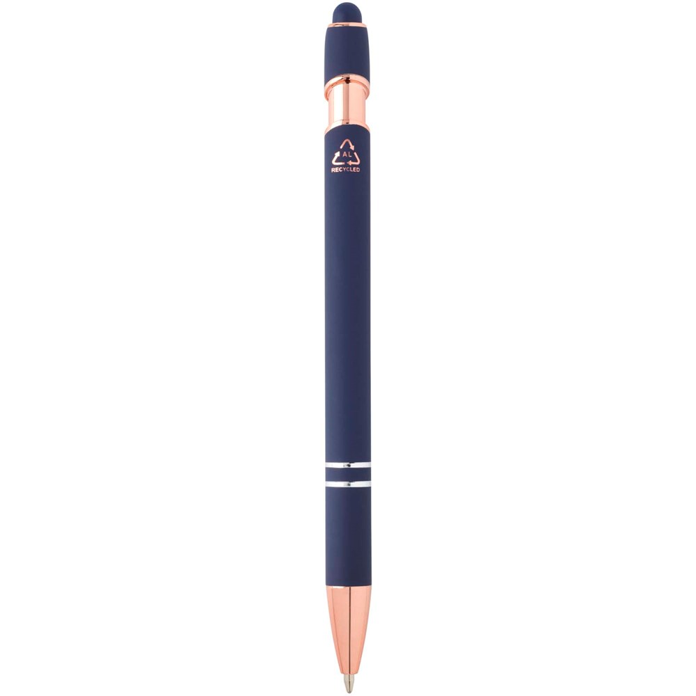 Le stylo bille Nanna avec finition or rose est pourvu d’un corps en aluminium recyclé et d’un stylet tactile en silicone. L’aluminium recyclé réduit également la quantité de déchets dans les décharges et contribue ainsi à la conservation des ressources naturelles, tout en réduisant les émissions de gaz à effet de serre. Couleur de l'encre : Bleue. Longueur d'écriture : 800 mètres. Taille de la plume : 1,0 mm.