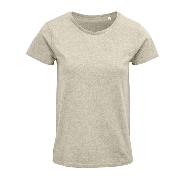 SOL'S CRUSADER WOMEN, tee-shirt femme jersey col rond ajusté, 100% coton issu de l'agriculture biologique, apprêt naturel pour une qualité plus douce et lisse jersey 150, col avec bord côte 100% coton, col rond, bande de propreté au col, coupe ajustée, tubulaire, (1) vert chiné clair : 60 % coton bio / 40 % polyester recyclé, (2) rose chiné : 60 % coton bio / 40 % polyester recyclé, (3) beige chiné : 60 % coton bio / 40 % polyester recyclé, (4) blanc chiné : 98 % coton bio / 2 % viscose, (5) gris chiné : 85 % coton bio / 15 % viscose.pour la correspondance des tailles, veuillez vous référer au size chart dans la documentation produit.