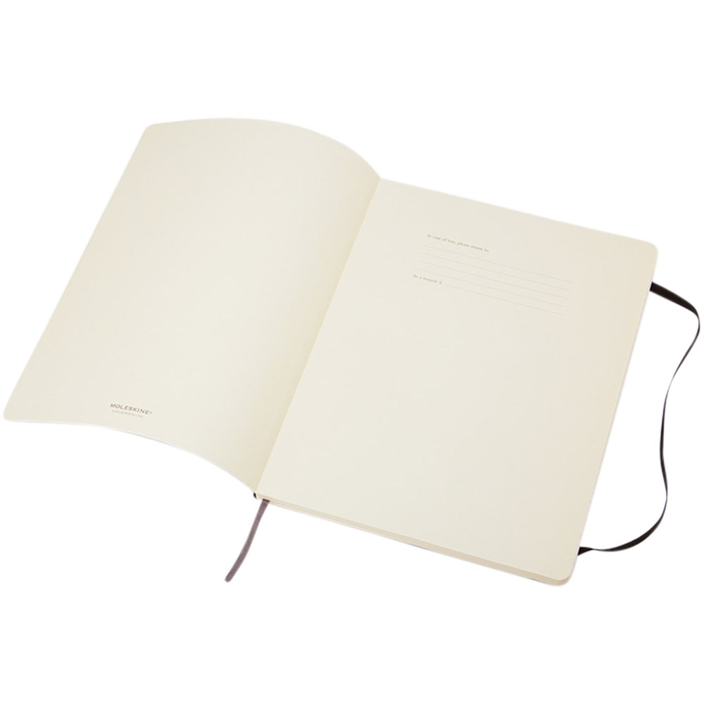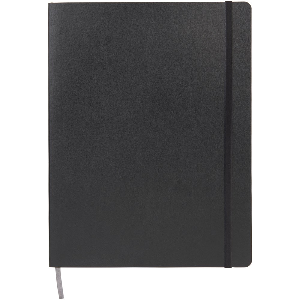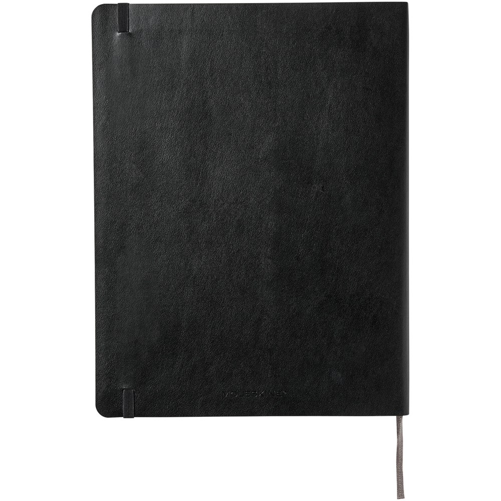 Le carnet Moleskine Classic XL (19 x 25 cm) à couverture souple est disponible dans une vaste gamme de couleurs éclatantes et élégantes. Le carnet dispose d’une couverture souple en carton avec coins arrondis, papier sans acide, marque-page et fermeture élastique. Sur la première page, un message « en cas de perte » avec de l’espace pour décrire la récompense de celui qui le trouvera. Attachée à la quatrième de couverture, une poche intérieure extensible décrit l’histoire du Moleskine. La poche peut être utilisée pour les notes et feuilles volantes. Contient 192 pages lignées couleur ivoire.