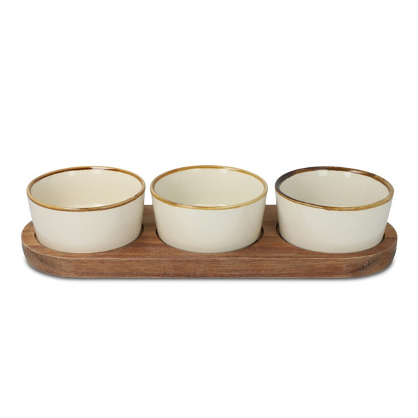 InSideOut Support en bois avec 3 bols ronds en céramique