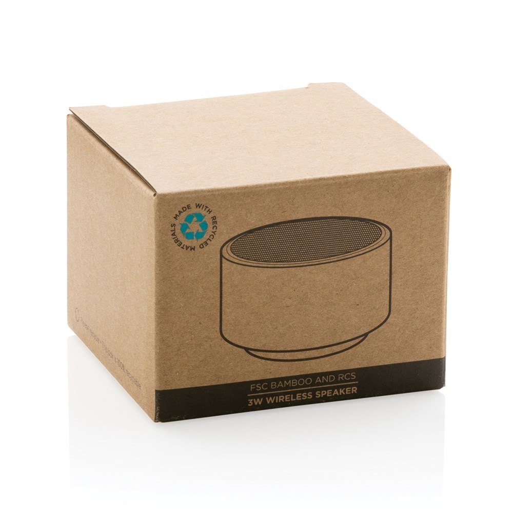 Haut-parleur sans fil 3W fabriqué avec un boîtier 100% bambou FSC® et de l'ABS recyclé certifié...plus