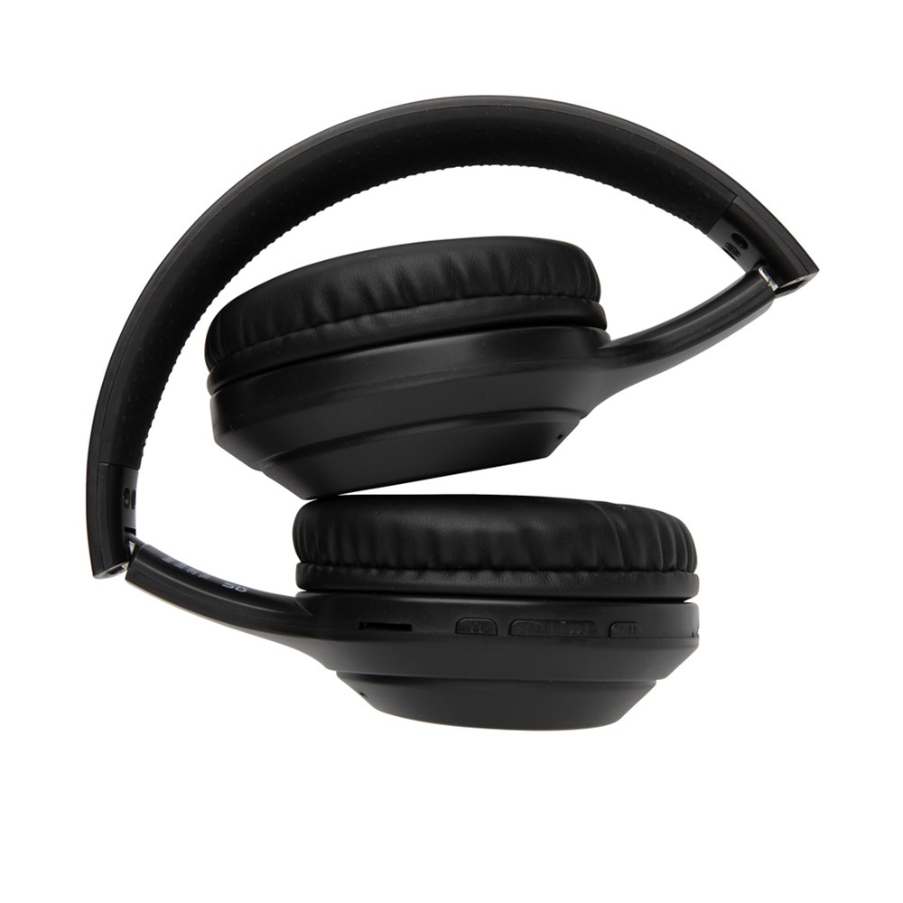 Casque sans fil pliable en ABS recyclé certifié RCS. RCS (Recycled Claim Standard) est une norme permettant la traçabilitié des matèriaux recyclés tout au long de la chaîne d'approvisionnement. Contenu recyclé total : 65% sur la base du poids total de l'article. BT 5.0 pour une connexion ultra fluide et une distance de fonctionnement jusqu'à 10 mètres. La conception supra-auriculaire des écouteurs permet une expérience sonore parfaite. Batterie 200 mAh pour une autonomie de lecture jusqu'à 6 heures et se recharge en 1,5 heures. Avec micro et fonction pick-up. Article et accessoires sans PVC. Câble de charge en matériau TPE recyclé sans PVC inclus.