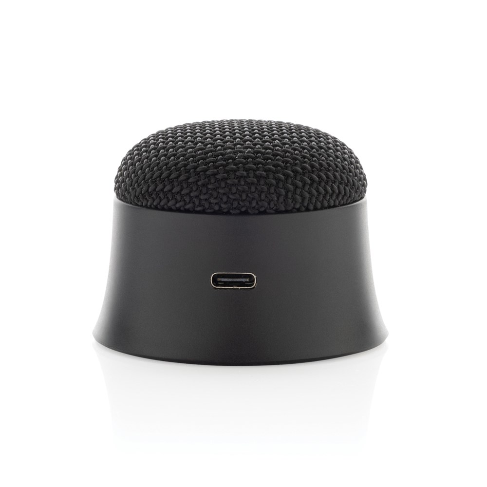 Haut-parleur sans fil magnétique 5W Magtune peut être facilement fixé à l'arrière d'un appareil qui supporte le fonction magnétique. Cliquez simplement dessus et vous pourrez commencer à utiliser l'enceinte comme support mobile tout en écoutant votre musique préférée. L'enceinte peut également être facilement fixé à d’autres surfaces magnétiques comme les réfrigérateurs. Fabriquée en ABS recyclé certifié RCS (Recycled Claim Standard). Contenu recyclé total: 22 % sur la base du poids total de l'article. La certification RCS garantit une chaîne d'approvisionnement entièrement certifiée pour les matériaux recyclés. Avec une batterie de 650 mAh de qualité. Durée d'autonomie de 5 heures et peut être rechargée en 2 heures. BT 5.0 pour une connexion fluide. Câble de charge Type C en TPE recyclé inclus. Sans PVC. Emballé dans un emballage FSC mix.