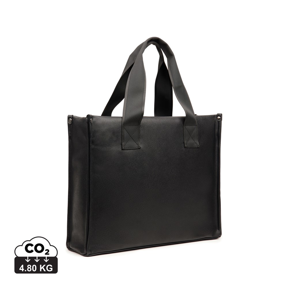 Sac fourre-tout avec l'extérieur et la doublure fabriqués à partir de PU recyclé conformément aux normes RCS, démontrant notre engagement envers un approvisionnement responsable.Avec une bandoulière confortable, ce sac fourre-tout est parfait pour les journées chargées en déplacement. Il comprend une poche rembourré pour ordinateur portable. Fabriqué à partir de 30 % de matériaux recyclés certifiés RCS (Recycled Claim Standard), garantissant une chaîne d'approvisionnement entièrement certifiée des matériaux recyclés utilisés. Le contenu recyclé total est basé sur le poids total du produit, reflétant notre engagement envers un approvisionnement responsable. Ce produit contient 23% de polyester recyclé certifié RCS et 7% de PU recyclé certifié RCS.Convient aux ordinateurs d'une taille totale de 17 pouces. Veuillez noter que les dimensions de l'écran ne sont pas les mêmes que celles de l'ordinateur entier.