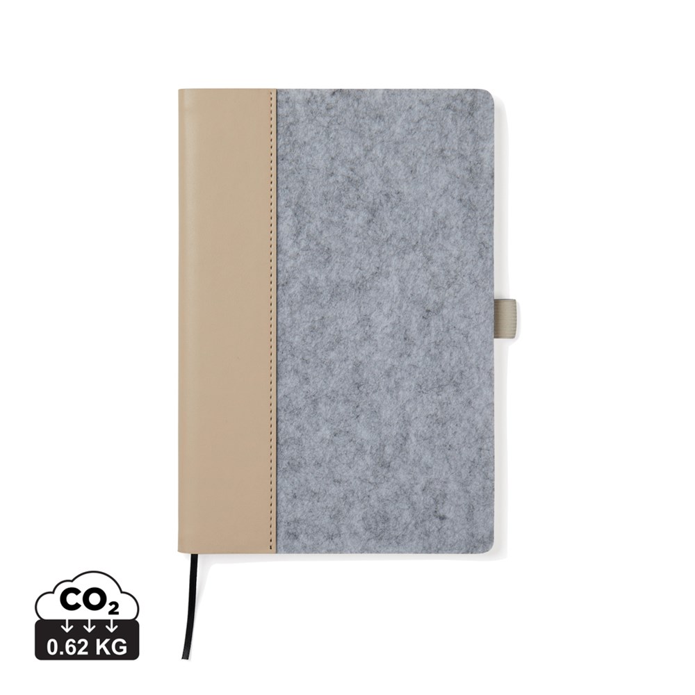 Cahier A5 élégamment fabriqué en feutre recyclé, avec un effet de mélange et un porte-stylo...plus
