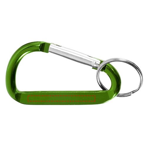 Porte-clés mousqueton pratique avec une finition métallique vive, qui peut être attaché à un sac à dos. Il est fabriqué en aluminium recyclé certifié RCS à 86 %, léger et résistant. La norme RCS (Recycled Claim Standard) vérifie le contenu recyclé d'un produit tout au long de la chaîne d'approvisionnement. Le mousqueton ne convient pas pour l’escalade.