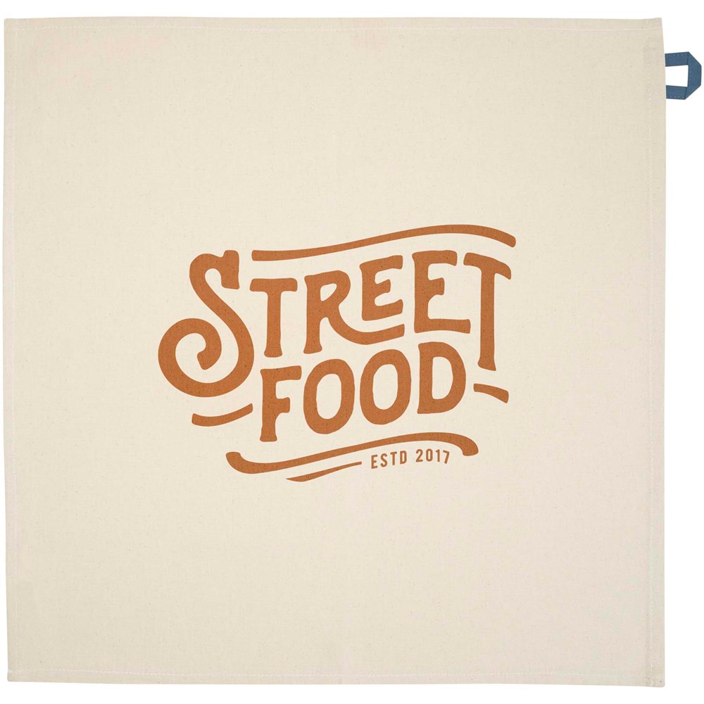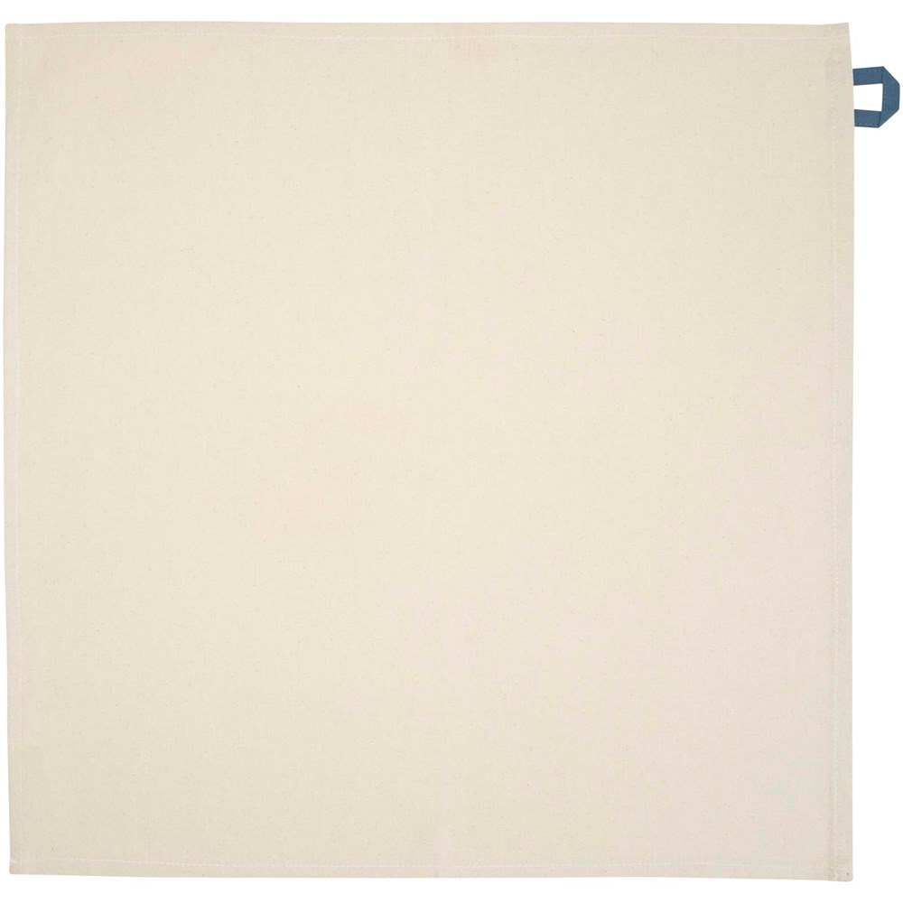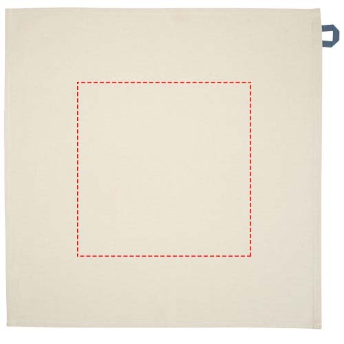 Torchon de cuisine en coton recyclé 200 g/m² certifié GRS et doté d'une boucle contrastée. Dimensions du torchon : 50 x 50 cm.