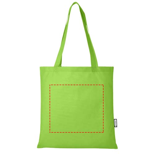 Fabriqué en RPET durable et résistant aux déchirures, le grand sac shopping Zeus recyclé certifié GRS est une option parfaite et plus responsable pour les foires ou les conférences. Son design fin en fait un modèle élégant et adapté au transport d'objets légers tels qu'un carnet de notes et un stylo. Les poignées mesurent 29 cm de long, ce qui permet de porter le tote bag à l'épaule. Capacité de charge maximale de 5 kg.