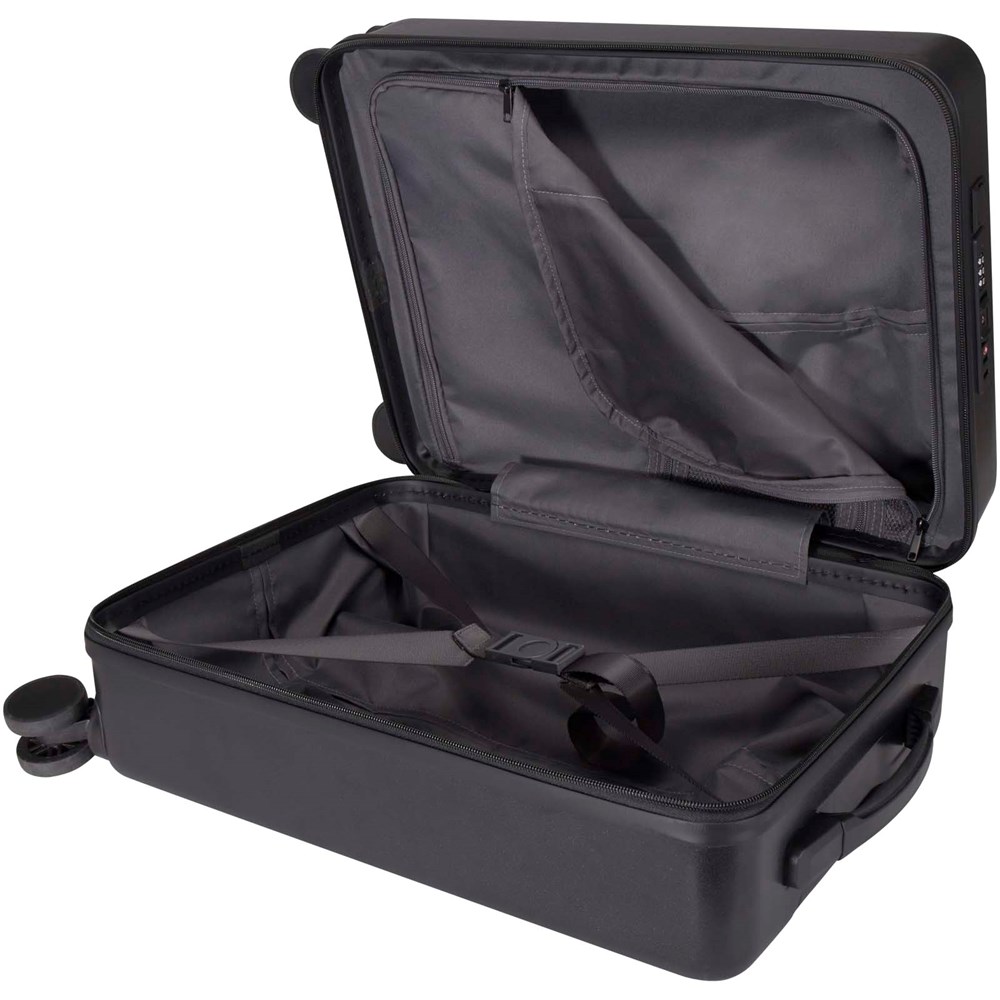 Le trolley cabine Rover Pro 20'' se distingue vraiment par son compartiment pour ordinateur portable 20'' ouvert à l'avant et son port de chargement USB intégré, ce qui en fait un compagnon de voyage idéal pour les voyages d'affaires comme de loisirs. Ce trolley est fabriqué en plastique recyclé certifié GRS résistant aux chocs et doté d'une doublure en RPET de qualité. Il comporte un compartiment pour ordinateur portable à ouverture frontale, des poches de rangement pour les accessoires électroniques et une serrure à combinaison TSA pour le compartiment principal et le compartiment à ouverture frontale. Le chariot est également doté de doubles roues pivotantes à 360 degrés pour faciliter sa manipulation dans les aéroports. Peut être emporté comme bagage à main avec la plupart des compagnies aériennes.