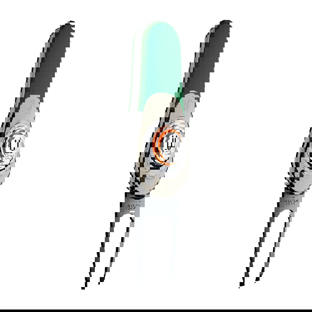 Lichtgewicht inklapbare pitchfork gemaakt van hoogwaardig ABS kunststof, voorzien van een magnetische ball marker met doming