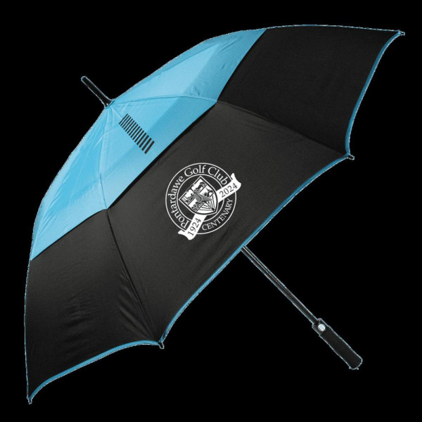 Stevige lichtgewicht golfparaplu met dubbellaags scherm en een doorsnede van 162 cm. Steel van glasvezel met een pop-up knop. Inclusief beschermhoes en doming op de onderzijde van het handvat