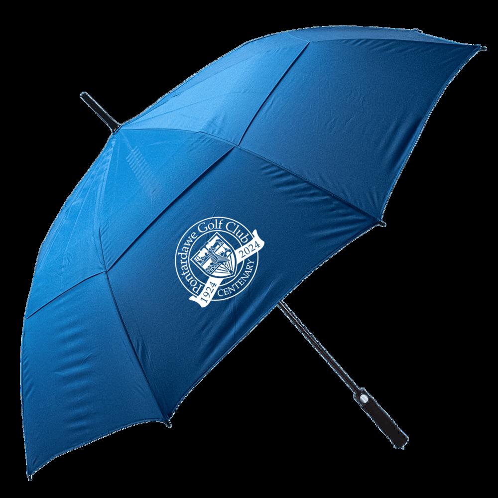 Stevige lichtgewicht golfparaplu met dubbellaags scherm en een doorsnede van 162 cm. Steel van glasvezel met een pop-up knop. Inclusief beschermhoes en doming op de onderzijde van het handvat