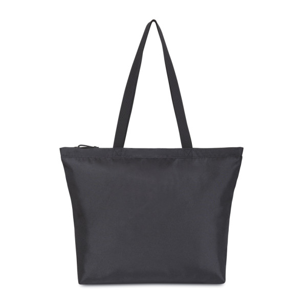 Sac tote classique, moderne et durable en utilisant du tissu recyclé et des sangles fabriquées à partir de bouteilles en plastique recyclées. Ouverture zippée vers le grand compartiment principal. Pochette intérieure pour ranger votre bouteille d'eau. Disponible des deux côtés de l'Atlantique. Cet article est également proposé par Gemline pour les clients des États-Unis et du Canada.