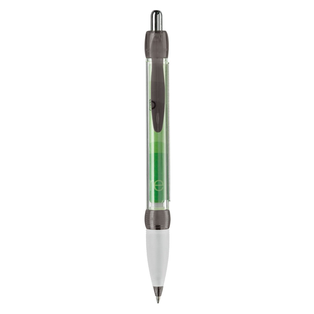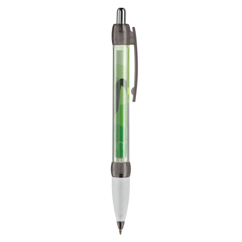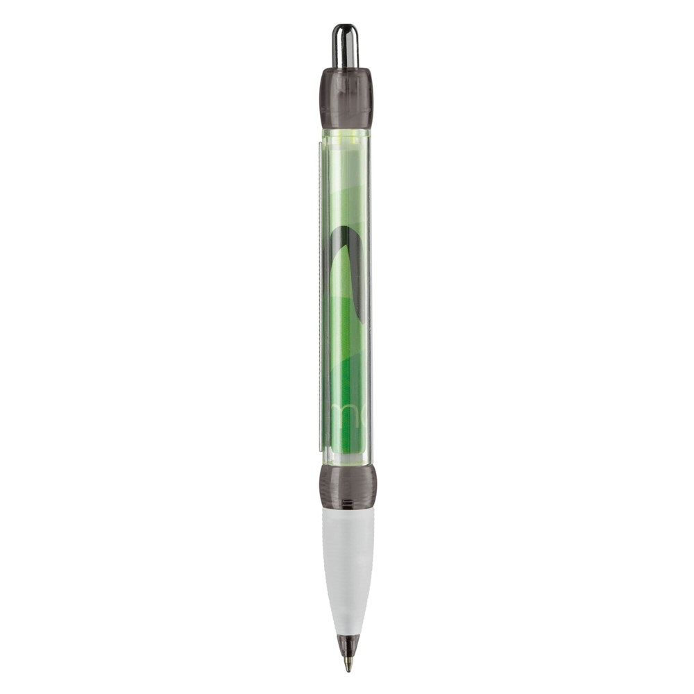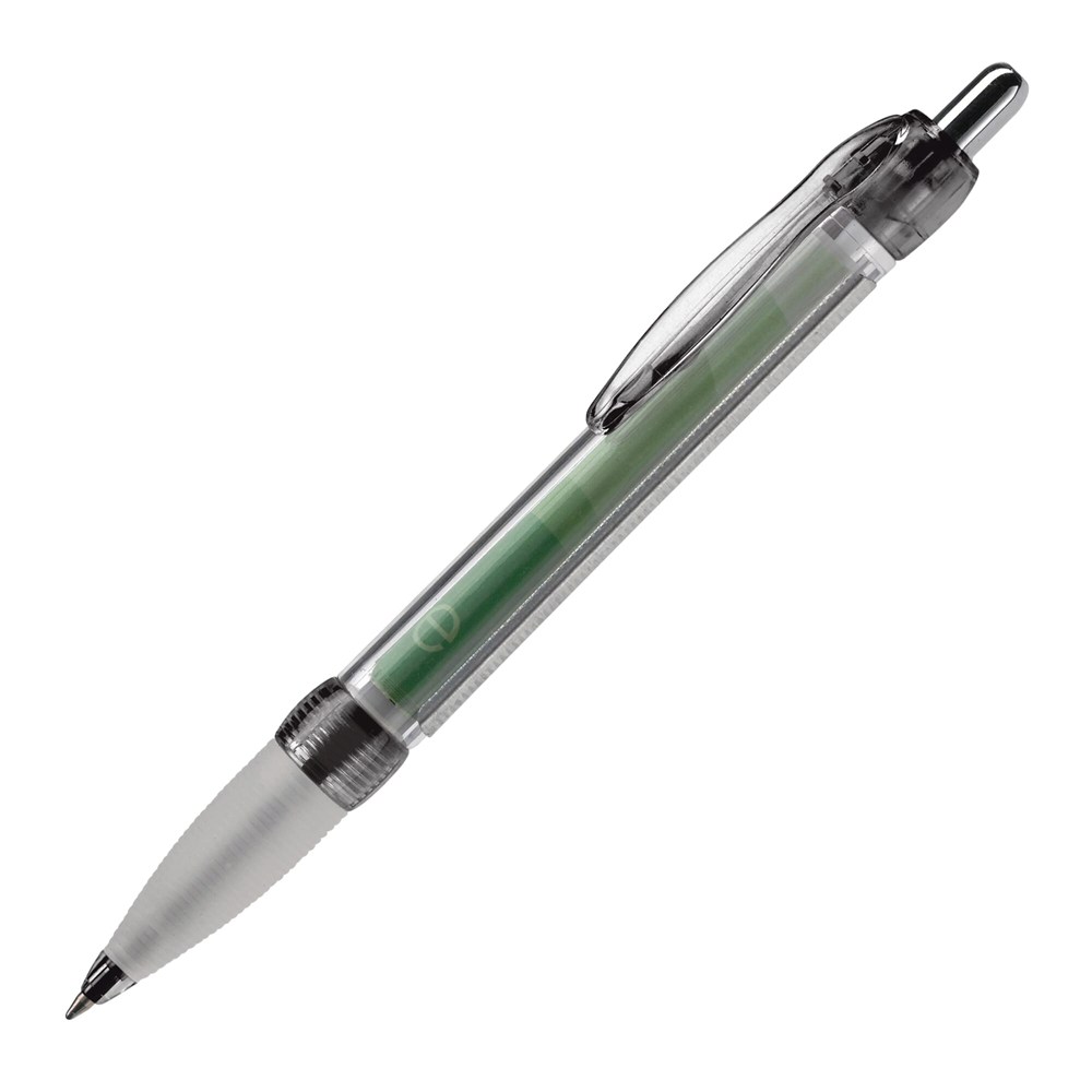 Stylo bille transparent avec grip en caoutchouc. Impression quadri recto-verso sur la bannière. Cartouche d'encre bleue X-20 . Impression sur le clip également possible.