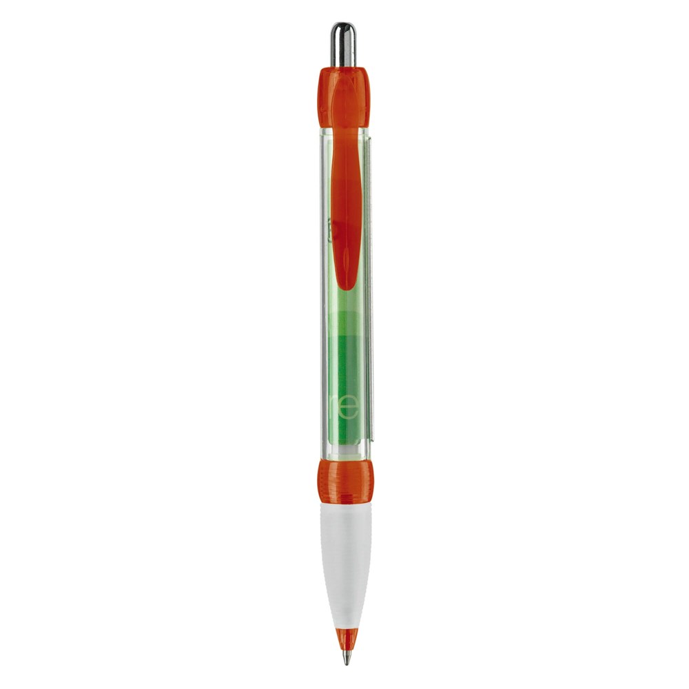 Stylo bille transparent avec grip en caoutchouc. Impression quadri recto-verso sur la bannière. Cartouche d'encre bleue X-20 . Impression sur le clip également possible.