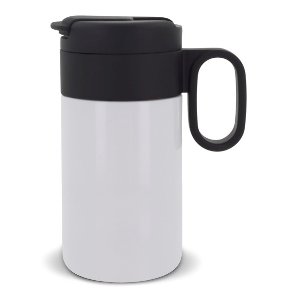 Mug isotherme double paroi sous vide de la série 'Flow' avec poignée. Le mug avec couvercle...plus