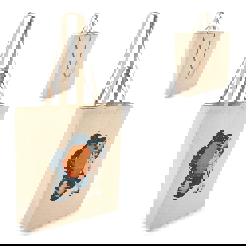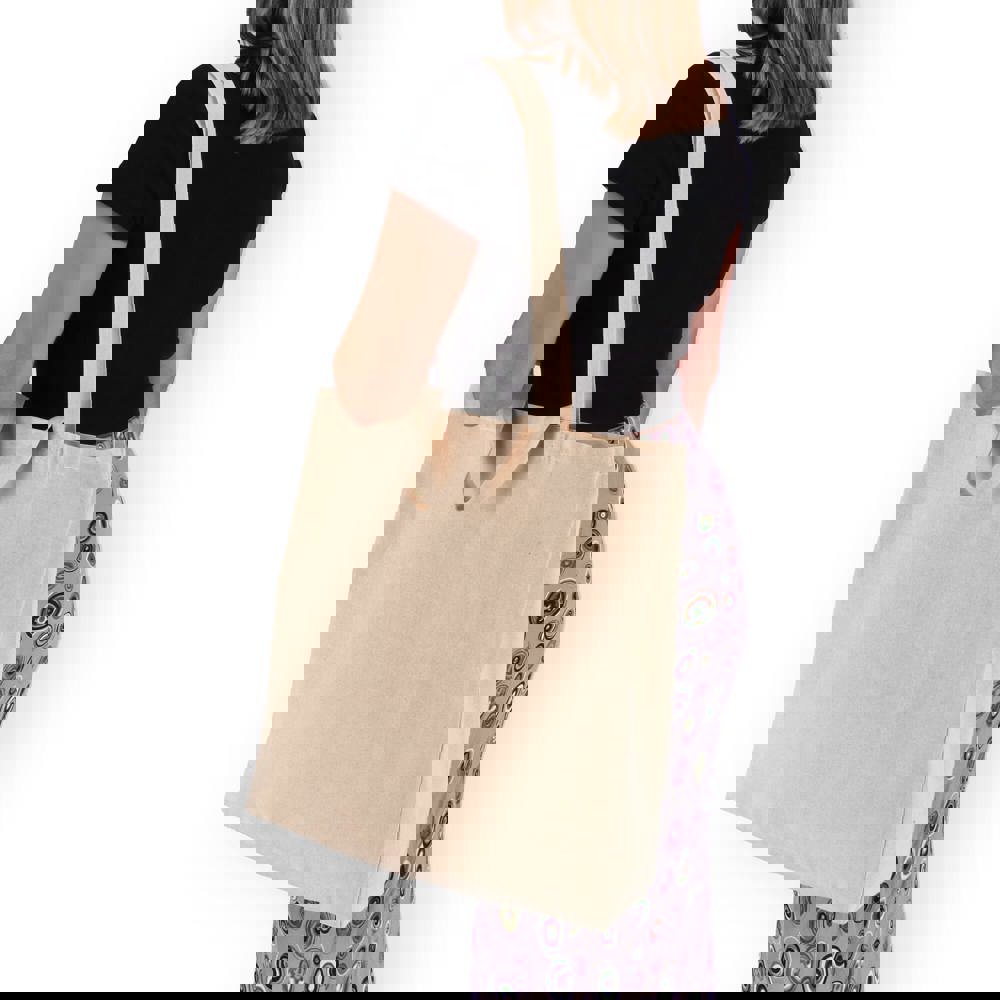 Versatile borsa in cotone 140 g/m² in colore naturale, con manici lunghi e corti per una maggiore flessibilità di trasporto. Certificato Oeko-Tex®. Ideale per la vendita al dettaglio, gli eventi o l'uso quotidiano.