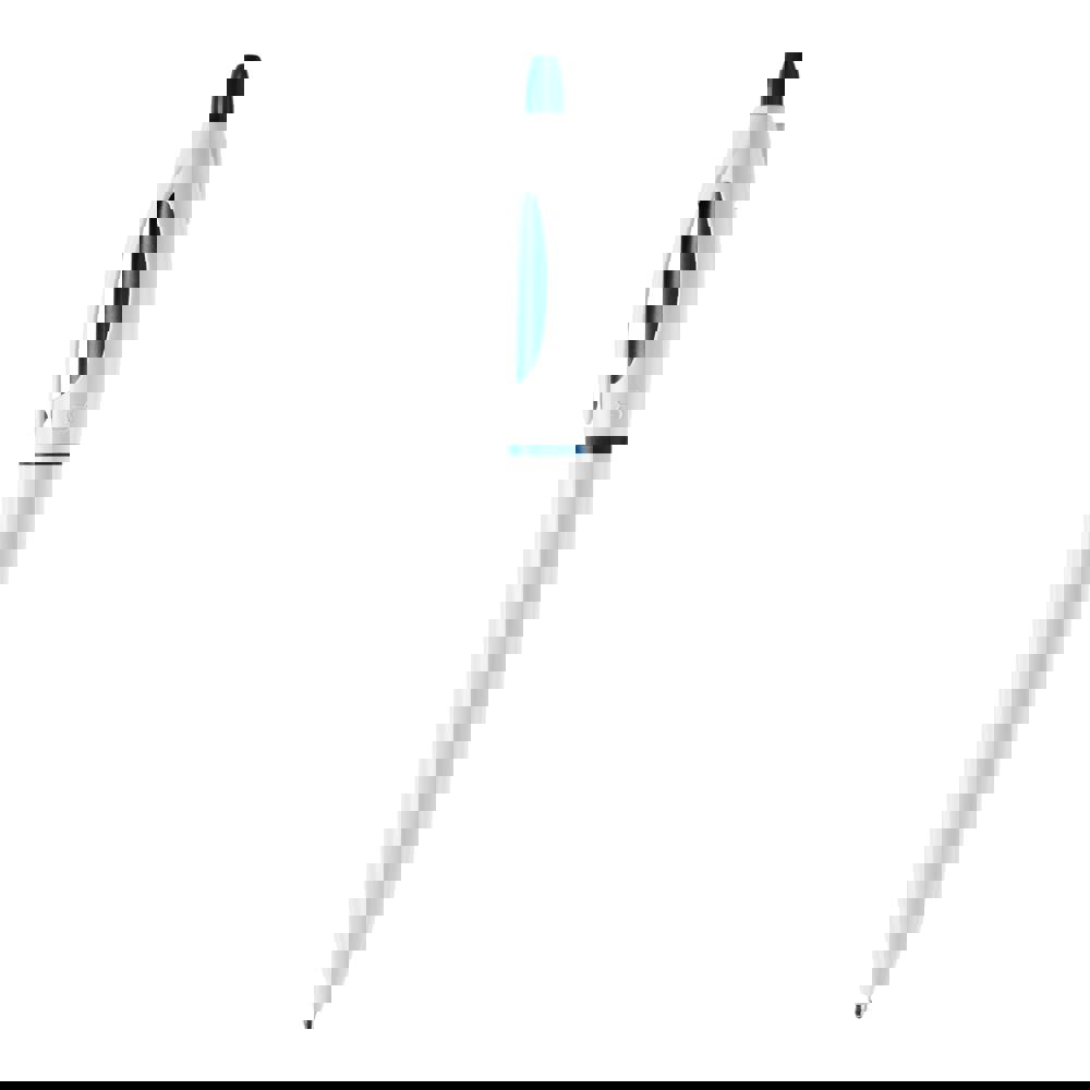 Le stylo bille S! de couleur opaque blanche avec poussoir et anneau colorés inclus une recharge d'écriture bleue X20. Sa cartouche X20 écrit jusqu’à 2.5kms, écriture par défaut bleue. Le stylo est fabriqué en Europe en plastique ABS. À partir de 5.000 pièces, vous pouvez choisir vos propres couleurs.