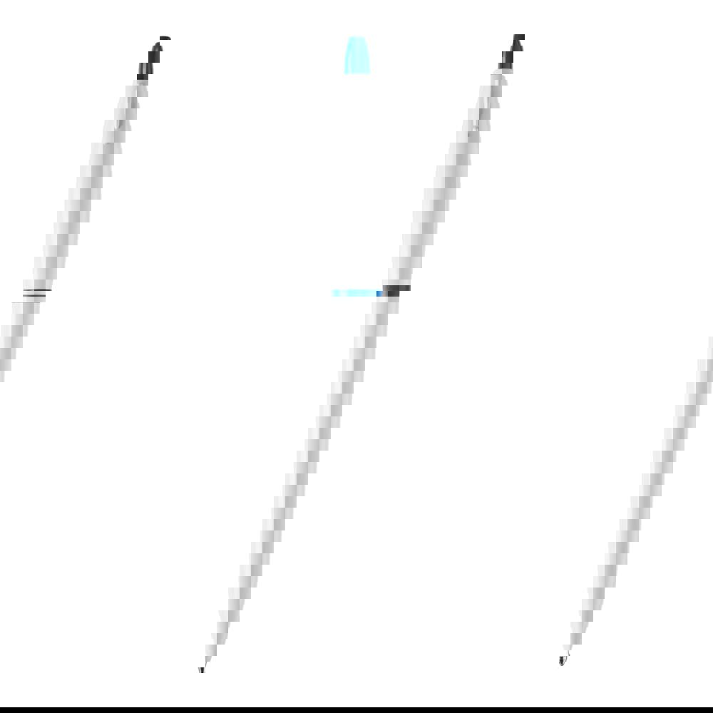 Le stylo bille S! de couleur opaque blanche avec poussoir et anneau colorés inclus une recharge...plus