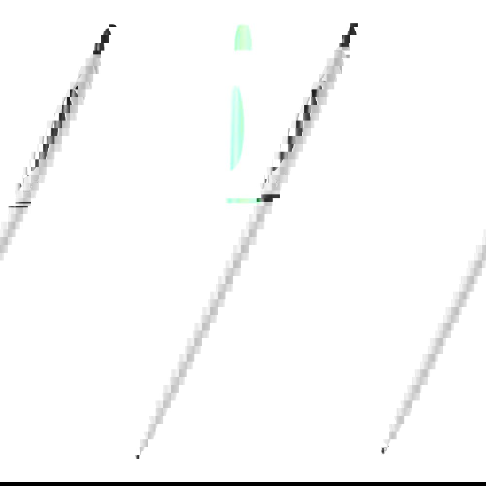 Le stylo bille S! de couleur opaque blanche avec poussoir et anneau colorés inclus une recharge...plus