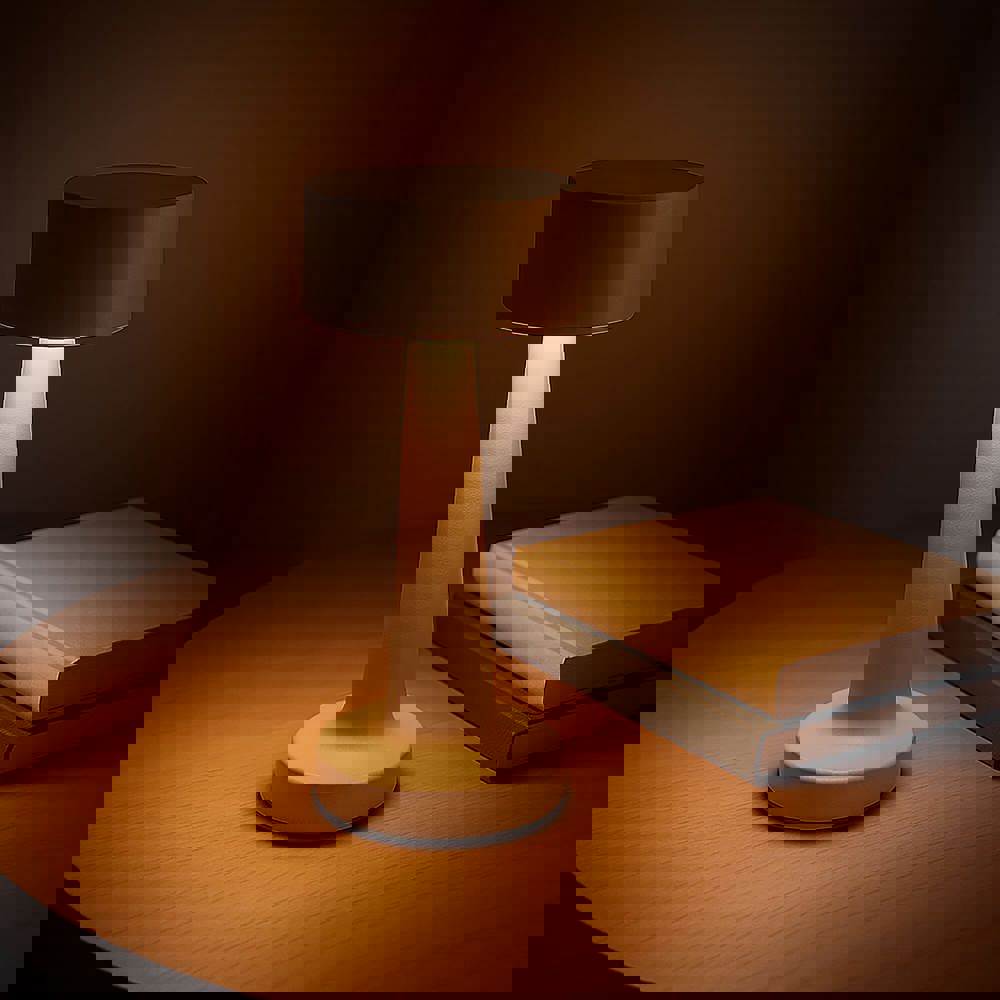 Illuminez votre espace avec la lampe Lumo. Touchez l’interrupteur pour changer de mode : chaud, blanc ou blanc chaud. Appui long pour varier l’intensité. Jusqu’à 6 h d’éclairage par charge.