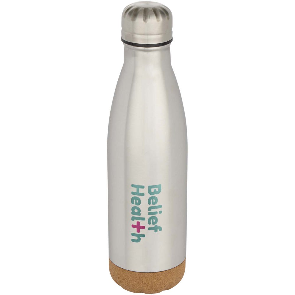 Bouteille d’eau Cove de 500 ml en acier inoxydable isolée sous vide et à double paroi avec détails en liège