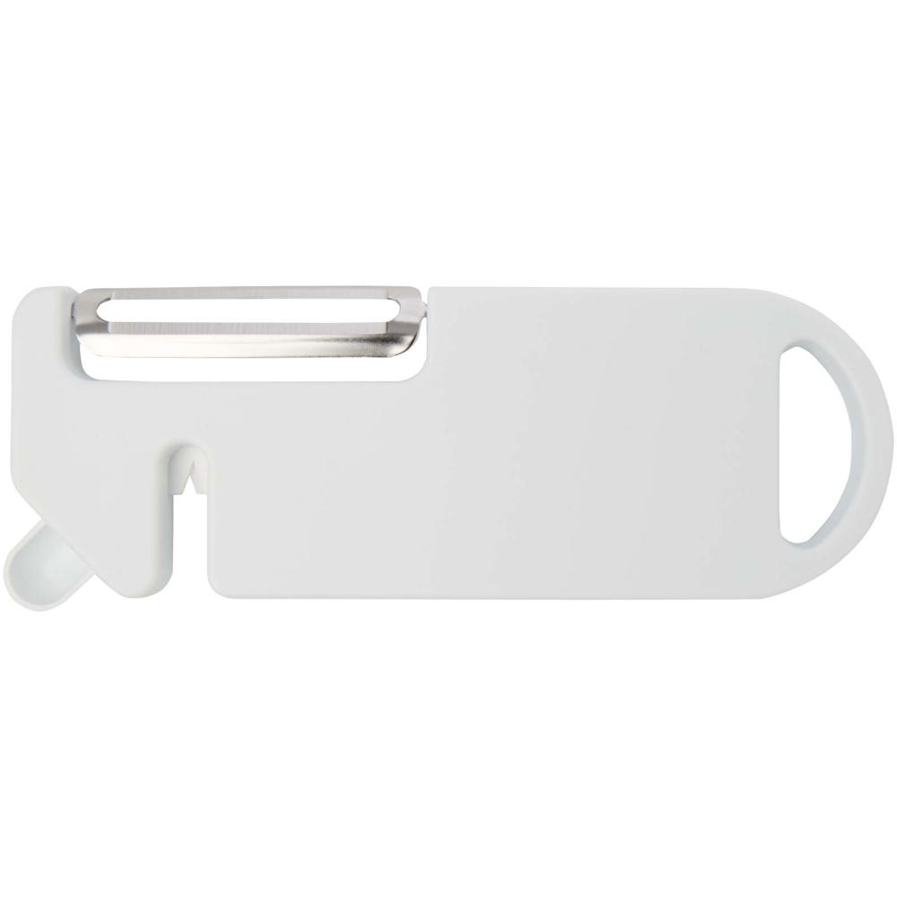 Cet ustensile de cuisine polyvalent réunit quatre fonctions essentielles en un seul modèle compact. Fabriqué en plastique recyclé, il comprend un éplucheur, un décapsuleur, un aiguiseur de couteau et un embout pointu pour éliminer les imperfections des pommes de terre. Un trou de suspension intégré permet de le ranger facilement. Pratique et peu encombrant, c’est un accessoire polyvalent indispensable à tout cuisinier.