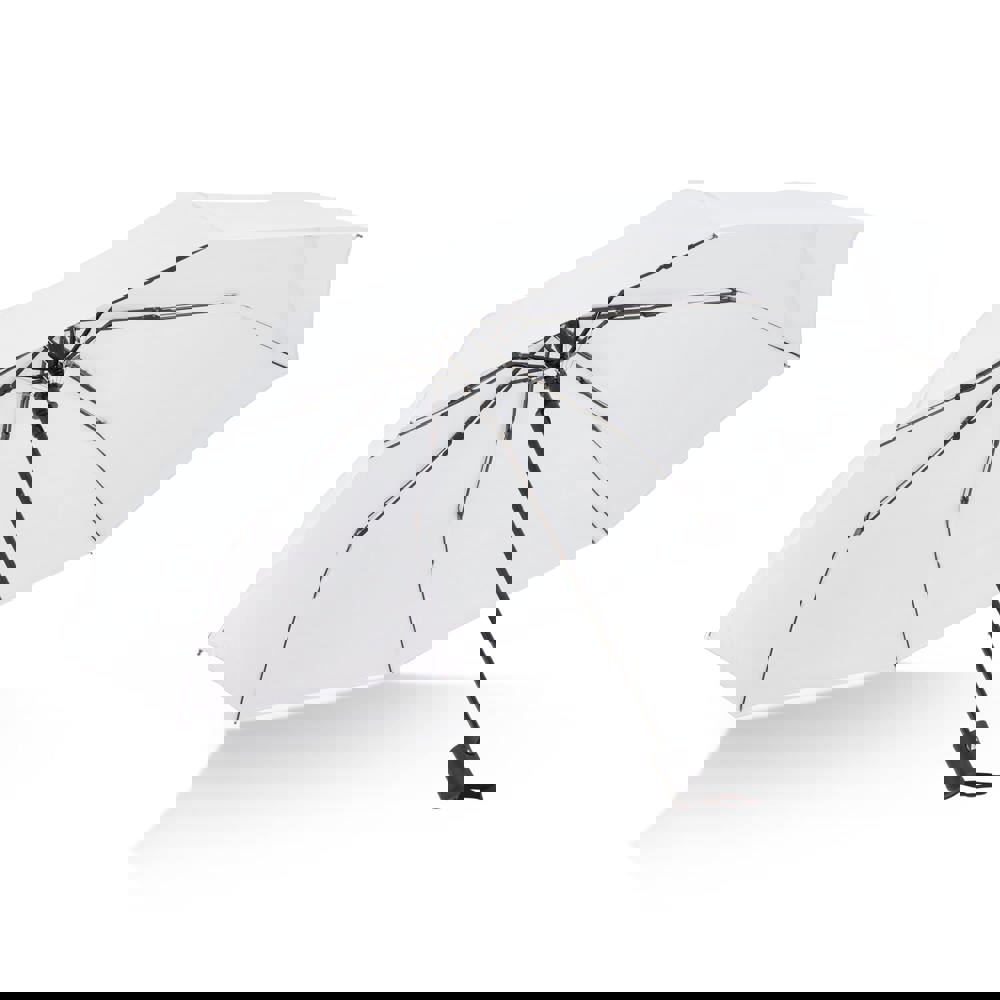 Parapluie pliable de 21.5" avec structure en fibre de verre et toile 190T pongé résistante au vent. Ouverture automatique, fermeture manuelle. Livré avec housse et cordon. Poignée en ABS confortable.