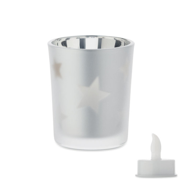 Bougie LED en PP dans un support en verre. 1 pile bouton CR2032 incluse.plus