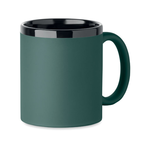 Mug en céramique avec revêtement au toucher doux et intérieur/bord noir. Idéal pour gravure laser. Emballage individuel dans une boîte en carton blanc. Capacité 300 ml.