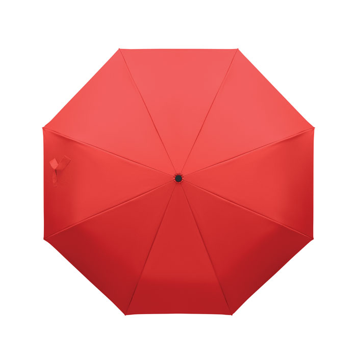 Parapluie tempête pliable 21'' avec mât et baleines en fibre de verre entièrement plaquée noir pliables en 2 sections. Panneaux en 190T RPET. Poignée mousqueton en forme de D avec finition en caoutchouc. Ouverture et fermeture automatique. Pochette incluse.