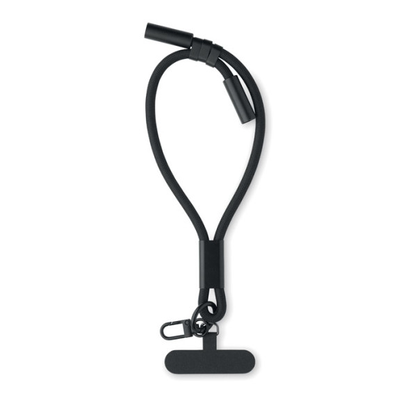 Câble / bracelet de charge et de transfert de données de type-C à type-C 60W en RPET avec support de cordon de téléphone et accroche-clé.