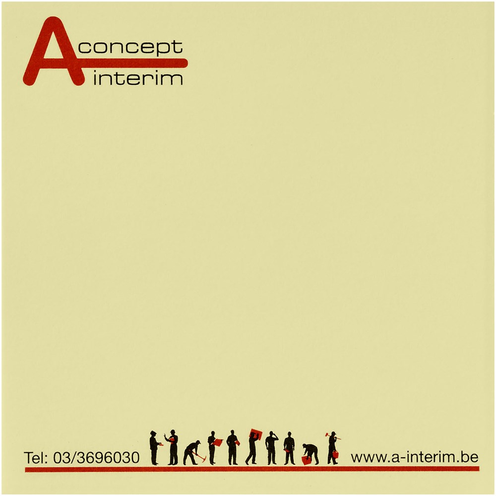 Mémo-autocollants Sticky-Mate® comprenant des feuilles auto-collantes de papier vierge de 80 g/m² en différentes couleurs. Marquage en couleurs pleines possible sur chaque feuille. Trois tailles possibles (25/50/100 feuilles).