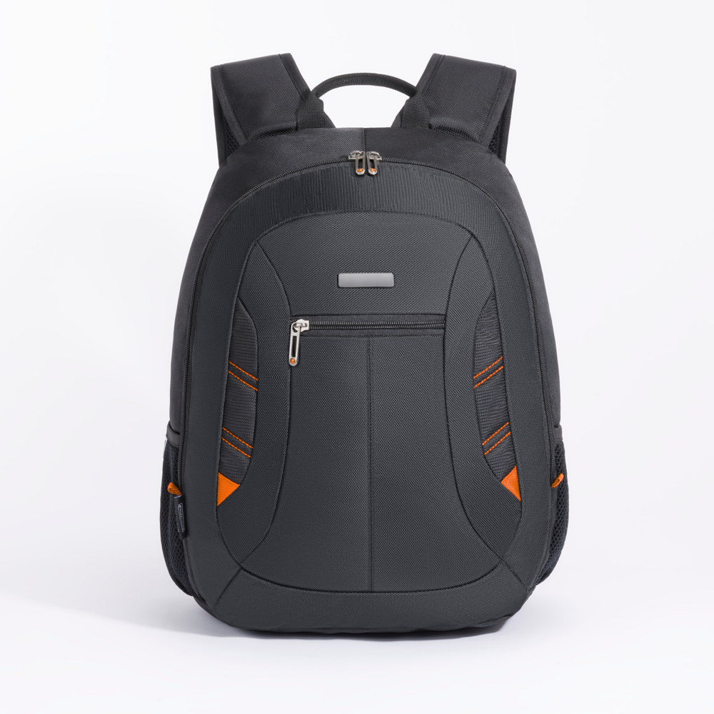 De rugzak is licht en ruim en heeft één hoofdvak met een vak voor een 15" laptop, vakken voor kleine zakelijke accessoires en 2 zijvakken. Extra verstevigde rug, verstevigde bretels, metalen ritsen en kleurrijke stiksels. Geanodiseerde metalen plaat, perfect om te labelen.