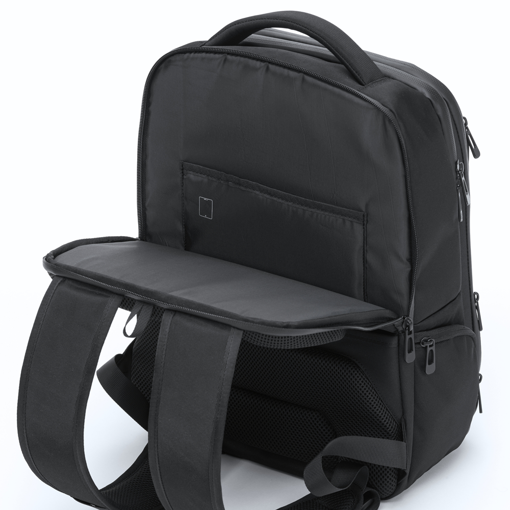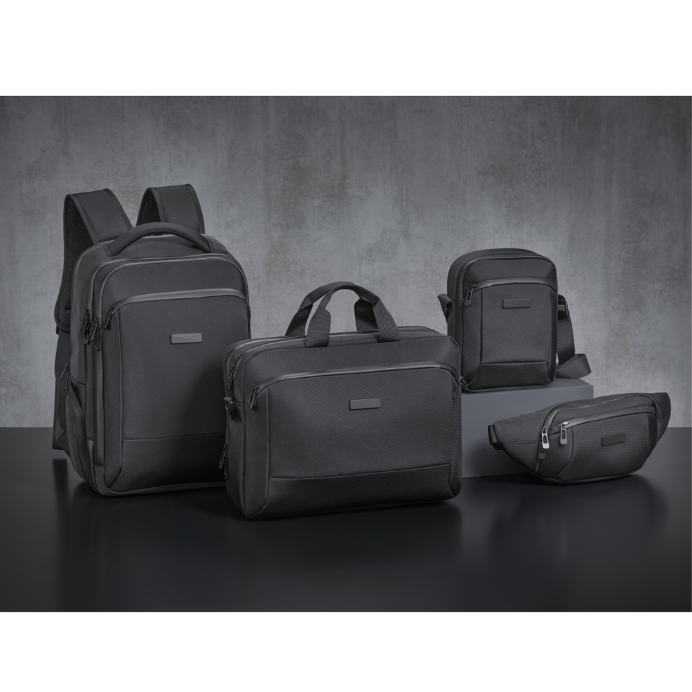 Een verfijnde zakelijke rugzak die elegantie en functionaliteit combineert. Gemaakt van dicht 1260D polyester voor uitzonderlijke duurzaamheid en dagelijks gebruik. Versterkte wanden beschermen de inhoud, inclusief een speciaal gevoerd vak voor een 15"-laptop en een vak voor een tablet. Het ruime hoofdcompartiment is doordacht ontworpen en uitgerust met meerdere verdelers voor kleine accessoires. Extra kleine externe vakken met rits bieden extra ruimte voor essentiële items. Een ademend rugpaneel en versterkte, verstelbare banden zorgen voor draagcomfort. Ideaal voor wie stijl en functionaliteit waardeert.