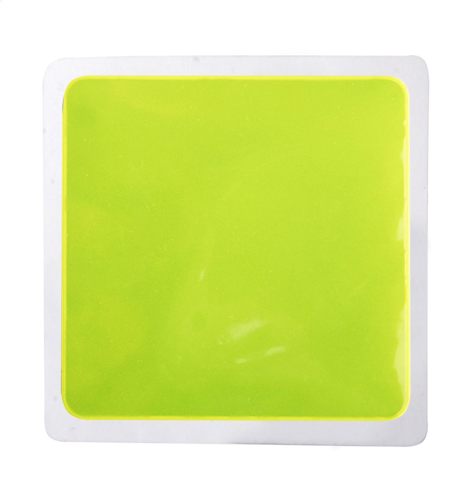 Autocollant réfléchissant, forme carrée. Destiné à un usage promotionnel uniquement, le produit n'est pas considéré comme un équipement de protection individuelle.