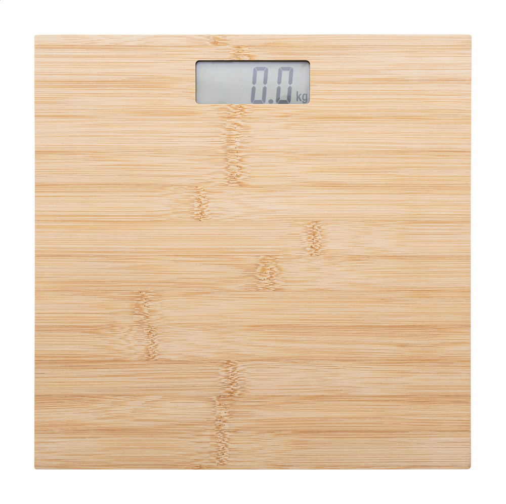 Pèse-personne numérique avec plate-forme de pesée en bambou. Capacité : 150 kg, graduation 0,1...plus