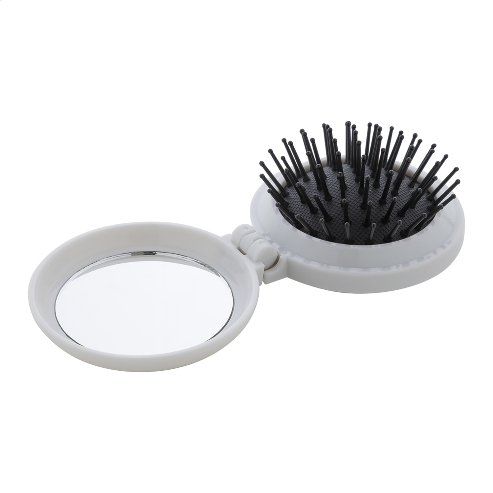 Brosse à cheveux pliable en ABS recyclé avec miroir de poche.plus